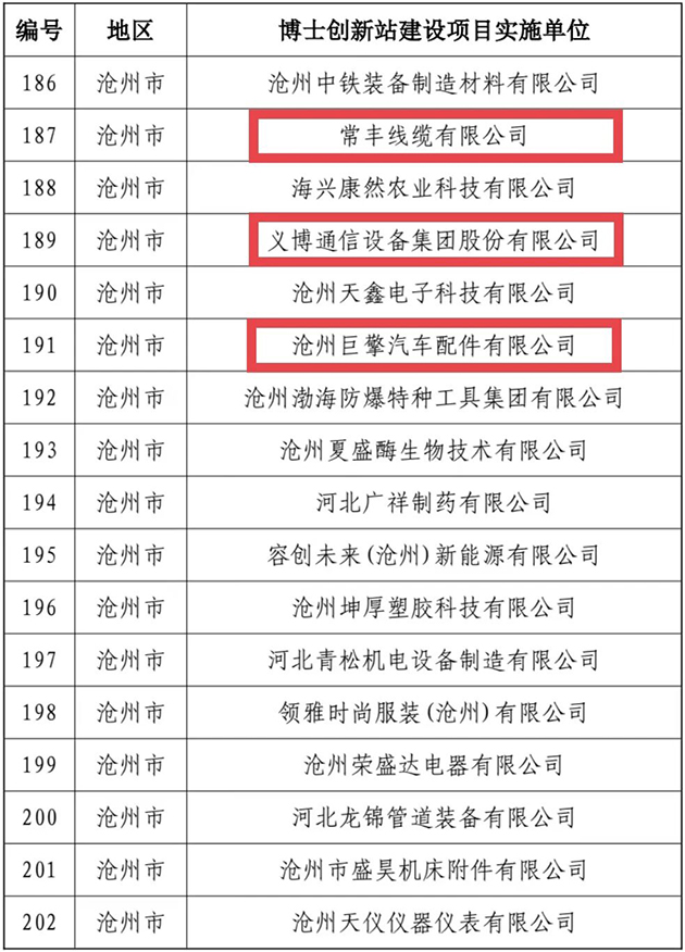 近日,河北省科学技术协会、省教育厅、省工商联联合印发《关于公布2025年河北省博士创新站建设项目认定结果的通知》,正式公布2025年河北省博士创新站建设项目300个认定项目认定名单,河间市三家企业凭借突出的科技创新实力与产业协同能力成功入选,成为推动区域经济高质量发展的创新标杆。全省申报项目优选出300个博士创新站建设项目,涵盖河北省八大重点产业及107个县域重点特色产业集群相关领域。